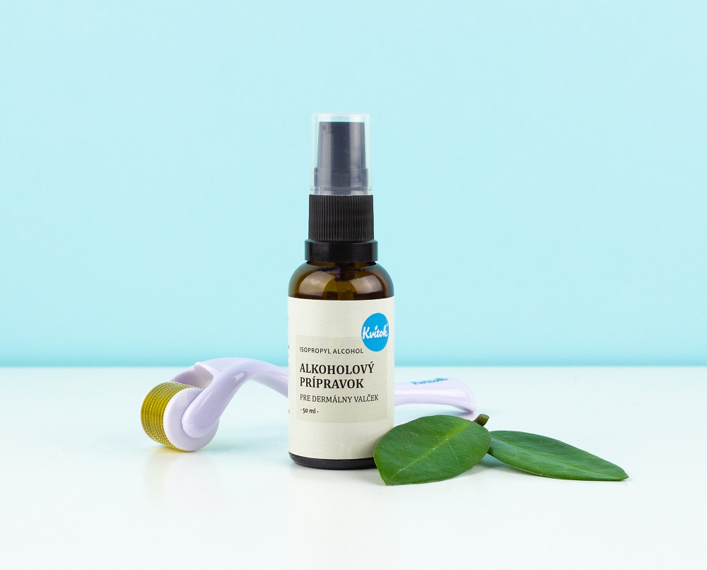 An alcohol-based product ensures safe and hygienic use of the cosmetic roller.