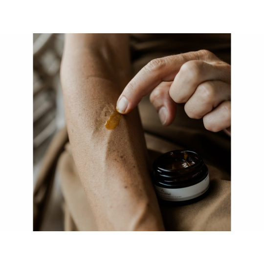 It is complemented by a strong St. John's wort macerate in olive oil, which even our grandmothers know is one of the most powerful natural remedies for treating scars.These two main ingredients form a harmonious whole with other oils, each of which has its irreplaceable place in the recipe. Castor oil helps active ingredients penetrate deeper into the skin, flaxseed and wheat oil support the skin for strong regeneration, and luxurious olive squalane restores skin elasticity. Other key components are CO2 extracts, specifically from rosehip oil and calendula. Rosehip lightens scars, calendula with CBD strongly supports healing and improves the overall condition of the skin.We are grateful to our friend and colleague Lída, a professional certified aromatherapist, for Zorro's unmistakable herbal scent of immortelle, bergamot, and rose geranium.