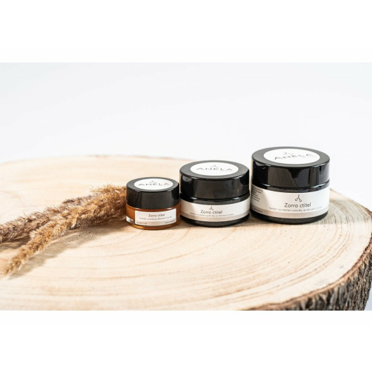Zorro admirer has an extra smooth texture that instantly melts upon application, allowing you to perform the gentlest massage you need to support quick and effective scar tissue regeneration. The base consists of shea butter from wild collection, which has an amazingly smooth and creamy consistency. It is complemented by a strong St. John's wort macerate, which is considered one of the most potent natural remedies for scar treatment. Another important component is castor oil, which helps active ingredients penetrate deeper into the skin, followed by flaxseed and wheat oil, which support the skin in strong regeneration, and last but not least, we mention olive squalane, which restores the skin's elasticity.
