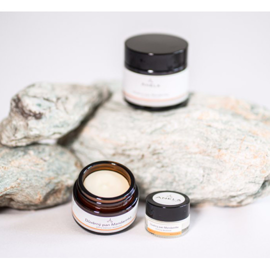 They have become our truly indispensable daily companions. Are you facing a challenging meeting at work or a day packed with commutes, errands, and family logistics? Are you going to work out this evening? Confidential gentlemen will handle all of this with you.They do not irritate the skin, do not leave a greasy feeling, and you don't have to worry about your clothes either, you won't have to deal with any traces of them. These are not antiperspirants, so they do not prevent sweating, and your body can naturally eliminate toxins. Nevertheless, thanks to the perfectly combined ingredients, you will still feel dry and clean, surrounded by a gentle fragrance. Most days, a single application in the morning will suffice, but if you have a particularly tough day or sweat excessively, we recommend reapplying the deodorant throughout the day. Our deodorants are packaged in small 30ml jars, so they fit into any handbag.The foundation of Důvěrní pánové is a very finely ground powder of baking soda combined with arrowroot starch, triethyl citrate, coconut oil, and shea butter.