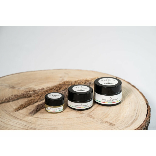 The skin can absorb it relatively easily and very deeply, which allows it to regenerate quickly and effectively.Small wounds, acne, cracked skin, eczema and other skin "imperfections" quickly heal and disappear under the influence of moringa oil. The skin also protects against the effects of free radicals, supports collagen production, and the formation of new cells. Well, what can we say, it's simply the king among oils.The effects of moringa oil are effectively complemented and supported by a balanced blend of healing essential oils of helichrysum, frankincense, palmarosa, copaiba, and lavender, which was designed for both of our moringa siblings of different concentrations by certified aromatherapist Lída Kotalíková.