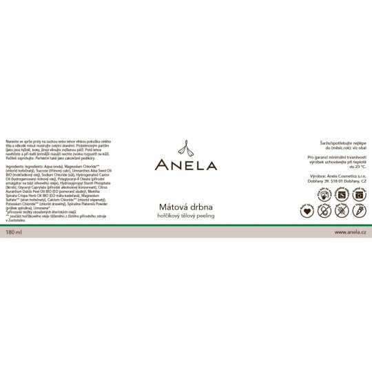 However, do not use even natural cosmetics on open wounds. This product is not intended to diagnose, prevent, or treat any disease. In case of eye contact, rinse for at least 15 minutes with lukewarm water from the inner corner to the outer corner. In case you wear contact lenses, remove them before rinsing. If irritation occurs, seek medical advice. Before the first use, it is recommended to perform the so-called patch test, i.e. apply and test the cosmetic product for its tolerance on a small area of the skin, preferably on the wrist, and wait 24 hours. This method can prevent the onset of allergic reactions and hypersensitivity to the given product. If an allergic reaction occurs after application, wash the skin surface with lukewarm water. Stop using the product immediately. If the allergic reaction persists for an extended period, seek medical assistance.Anela Cosmetics s.r.o., Dobřany 39 518 01 Dobřany, objednavky@anela.cz