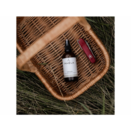 Lesa Pán does not contain any harmful chemicals and provides a triple service to you and your skin. A special composition of essential oils will replace your perfume, ensure that all insects avoid you, and thirdly, Lesa pán brings you antiseptic and soothing effects. Insect bites will stop itching, be gently disinfected, and treated. The combination of alcohol, organic apple cider vinegar, and strongly scented oils such as tea tree, lavandin, rosemary, clove, basil, and eucalyptus is unique, very pleasant, and non-irritating. It is designed to be safe for children, pregnant women, and seniors, yet repellent enough to keep unwanted insect companions at bay, allowing you to enjoy your time in nature in peace and harmony.