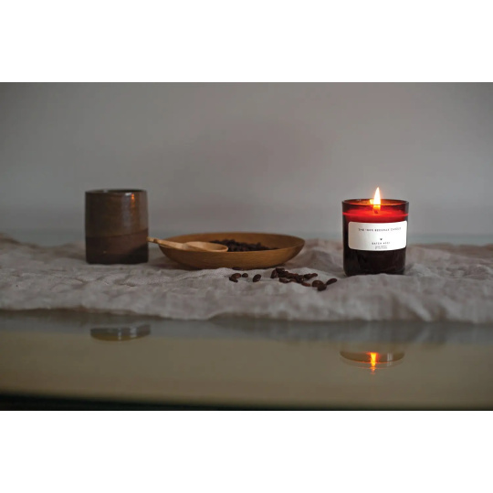 Usage: Each time you use the candle, let it burn for at least 3-4 hours continuously so that the wax melts across the entire surface of the candle up to the edges of the glass. In the case of burning a candle for a short period (less than 2 hours), there is a risk that the wax will not melt evenly.In the case of a small or large flame, and also during the time between burning, we recommend trimming the wick to 5mm. At the end of the wick, carbon may accumulate, causing a small flame – simply trim the wick.Place the lit candle on a solid, flat, non-flammable surface and away from flammable objects. The candle must not be in a draft. Keep out of reach of children and pets. Be careful when handling a lit candle, the glass can be very hot. Do not relight if the wax level is less than 1 cm. Never leave a candle burning unattended!