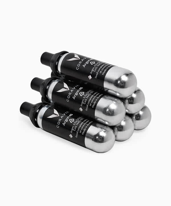 Coravin Pure™ Capsules are an essential component of all Coravin wine preservation systems. They are filled with pure argon gas, which pressurizes the bottle so that the wine can flow through the needle. Then, after the system is removed, argon preserves the remaining wine so that it is not exposed to oxygen, thus preventing its spoilage.