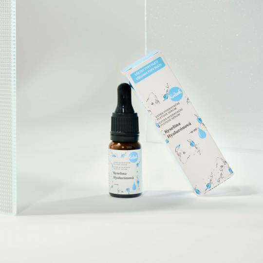 The hydrating facial serum contains a combination of 2 types of hyaluronic acid in a high 2% concentration. Low molecular weight HA can penetrate deeper layers of the skin more effectively, ensuring higher hydration efficiency. High molecular weight HA acts on the surface and immediately improves hydration.