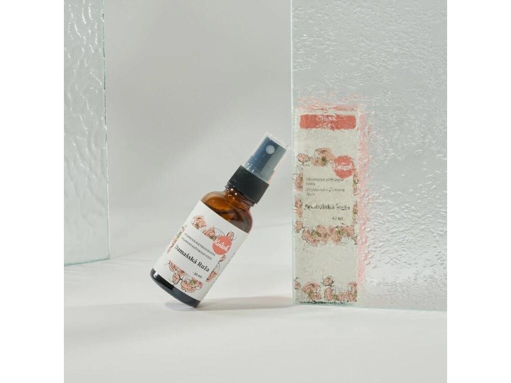 100% pure floral hydrolate from rose petals without preservatives and alcohol, certified according to ECOCERT standards. It is obtained from rose petals during their distillation in the production of essential rose oil. Roses harvested in the early morning hours, when their fragrance is strongest, are used for production. The resulting hydrosol is clear and strongly aromatic.