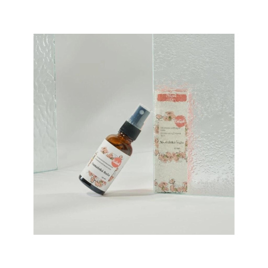 100% pure floral hydrolate from rose petals without preservatives and alcohol, certified according to ECOCERT standards. It is obtained from rose petals during their distillation in the production of essential rose oil. Pink roses collected in the early morning hours, when they have the strongest fragrance, are used for production. The resulting hydrosol is transparent and strongly aromatic. It harmonizes the psyche, acts as an antidepressant, and alleviates feelings of fear.Soothes, alleviates stress, brings inner peace (in cases of sadness, depression, tension, stress).