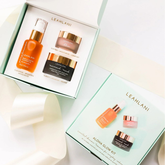 Aluxurious three-step beauty ritual with mini versions of Leahlani's most popular skincare products. The perfectly formulated botanical formulas of the products in the Aloha Glow Kit work together to cleanse, moisturize and nourish the skin, enhancing the skin's natural beauty.