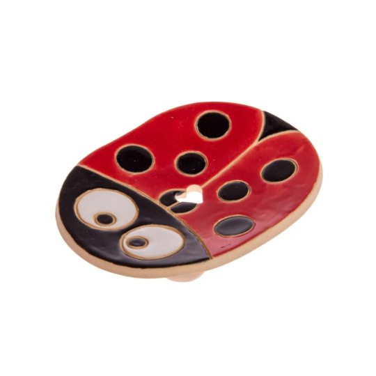 Soap dish on legs, with a heart-shaped hole for water drainage.