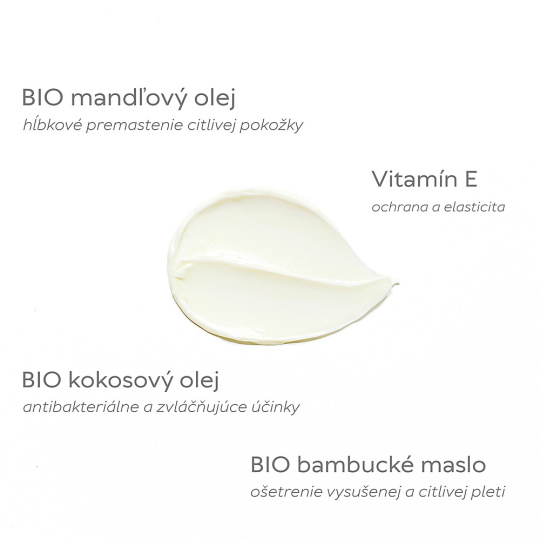 Nurturing balm with rose water, shea butter, almond and coconut oil is primarily intended for baby skin from the first day after birth.