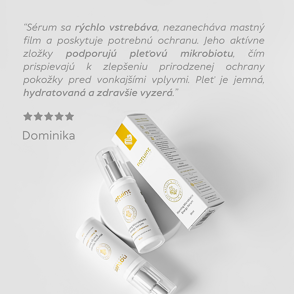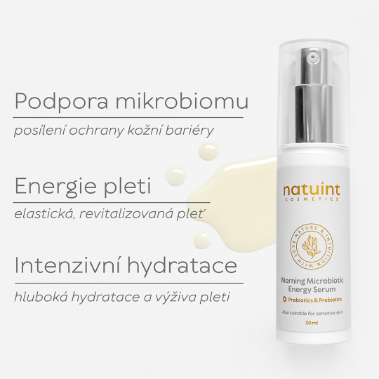 - Support for the skin microbiome: The skin is home to billions of microorganisms that make up the skin microbiome. This microbiome is key to protecting the skin from external influences and premature aging. The Natuint microbiotic formula supports the balance of the skin's microflora, helping to maintain the skin healthy, balanced, and resistant to irritation, inflammation, and harmful effects.
