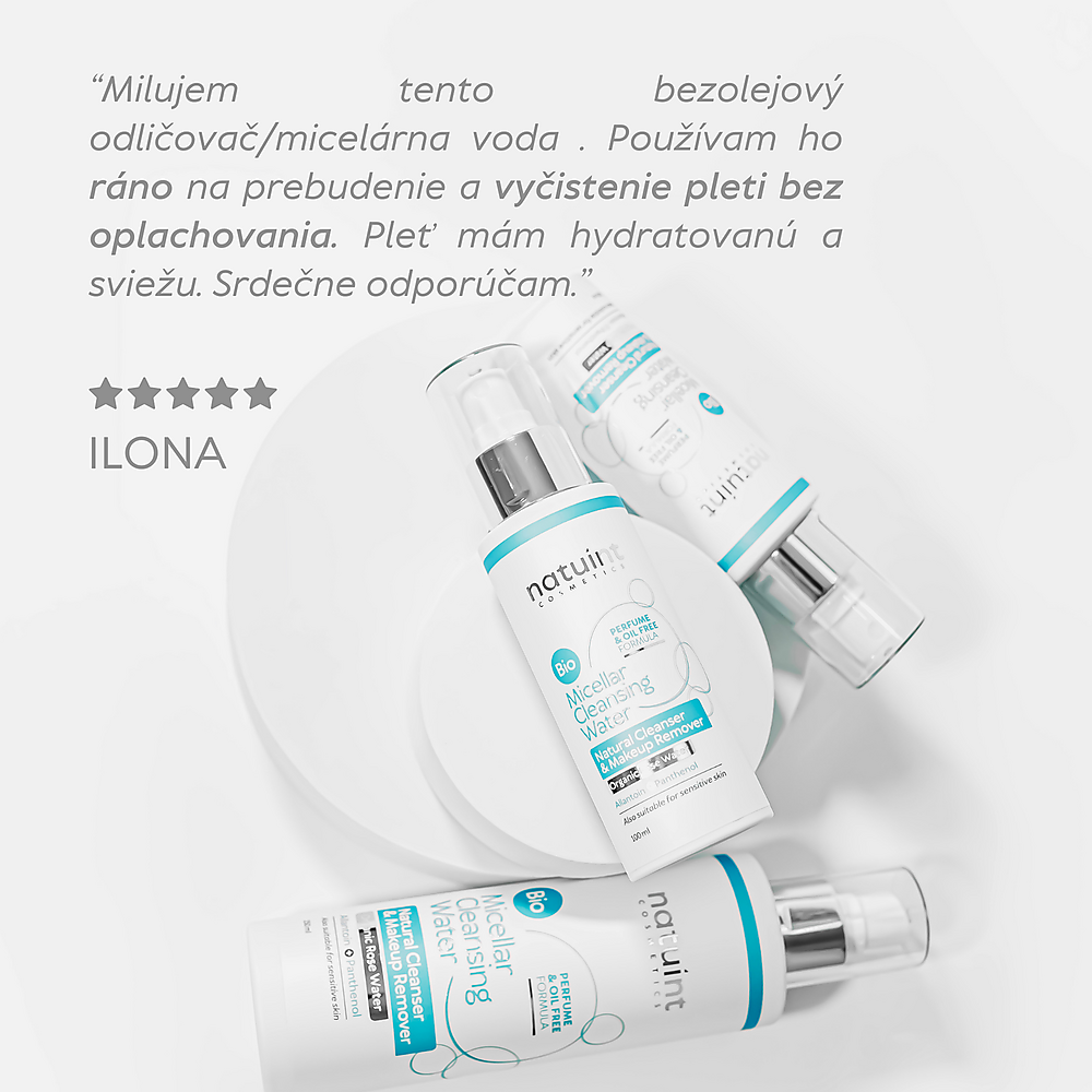 Natural micellar water is a gentle cleansing agent that effectively removes makeup, impurities, and excess oil without disrupting the skin's natural balance. Exceptionally gentle formula cleanses the skin while soothing and hydrating it. The makeup remover is completely fragrance-free and suitable for all skin types.