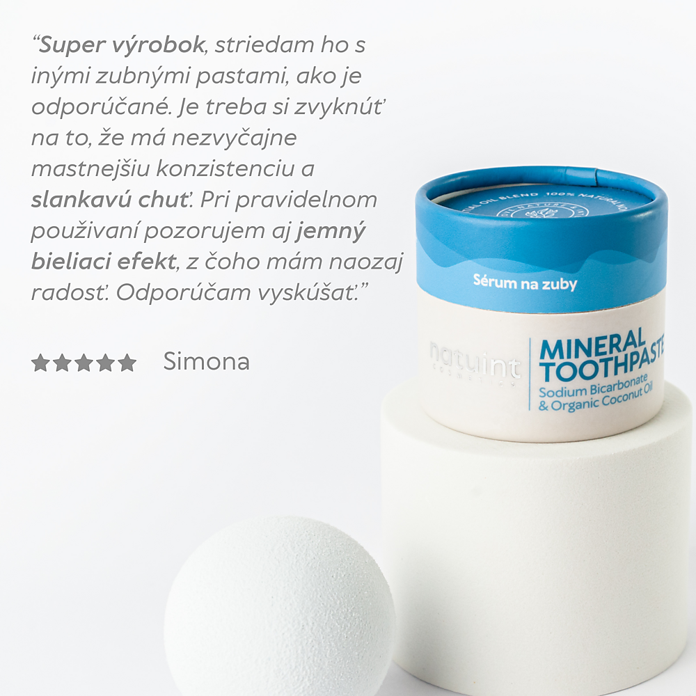 Baking soda acts as a mild abrasive. Helps remove plaque, reduce harmful bacteria, and inflammation of the gums. Removes stains from teeth and naturally whitens them. Neutralizes mouth odor, refreshes breath in combination with essential oils.