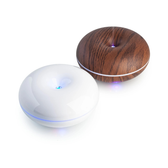 Mist diffuser with optional colour strip. The ultrasonic aroma diffuser combines the beneficial effects of aromatherapy and gentle air humidification. It allows you to choose a pleasant undercolouring in seven different colours or to switch between them automatically. The subtle colours thus help to complete the mood or suitably complement the colour scheme of the space. You can also turn off the underpainting. The dispersion of essential oils by ultrasound without heating is very gentle on the essential oils, which retain all the properties important for their active effect in the air. The diffuser creates a fine mist that carries essential oils and subtly moistens dry air. It is equipped with a low water level indicator with automatic shut-off.