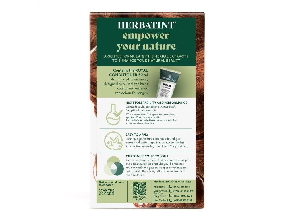 The color gives hair an intense color and shine. Hair looks fresh, regenerated, silky smooth, and strengthened. Thanks to its gel consistency, the paint is very easy to apply and completely odorless. The entire dyeing process takes no more than 40 minutes. Moreover, Herbatint does not test its products on animals and is also suitable for vegans. On our blog, you can check out the color chart of all the colors we have in our e-shop. Remember that the resulting color after dyeing may not always match the color on the box. It depends on the original hair color, the genetically determined pigment in the structure of your hair, which may not be visible in the natural hair color, but some Herbatint colors can highlight it; also on the current color (i.e. what color was applied before Herbatint), or whether you have regrowth, gray hair, or highlights.
