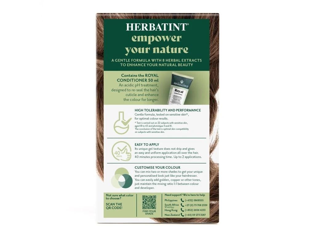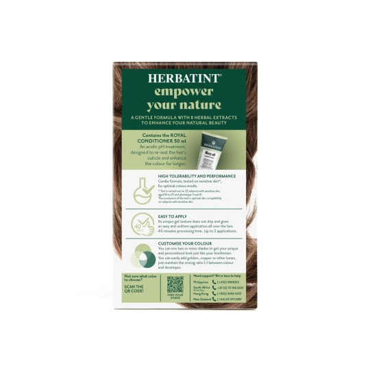 The color gives hair an intense color and shine. Hair looks fresh, regenerated, silky smooth, and strengthened. Thanks to its gel consistency, the paint is very easy to apply and completely odorless. The entire dyeing process takes no more than 40 minutes. Moreover, Herbatint does not test its products on animals and is also suitable for vegans. On our blog, you can check out the color chart of all the shades we offer in our e-shop. Remember that the resulting color after dyeing may not always match the color on the box. It depends on the original hair color, the genetically determined pigment in the structure of your hair, which may not be visible in the natural hair color, but some Herbatint colors can highlight it; also on the current color (i.e. what color was applied before Herbatint), or whether you have regrowth, gray hair, or highlights.