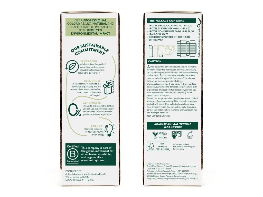 Usage: Read and carefully follow the instructions. All shades of Herbatint can be mixed together to create your own shade, but the same volume of color and developer must always be used. You can also mix a coloring shampoo for a wash-out color from Herbatint colors. How to proceed with dyeing already colored or otherwise treated hair? LIGHTENED HAIR: Herbatint can restore your hair's natural color. Since lightened hair is more porous, we recommend a shade lighter than the one you have chosen. Shorten the application time by ten minutes and avoid cool and ashy tones. HAIR WITH PERM: Do not dye your hair immediately after a perm. We recommend a two-week interval, using a shade one degree lighter than you have chosen, and reducing the application time by 10 minutes. HAIR AFTER HENNA APPLICATION: Henna coats the hair, which prevents the color from penetrating the hair. You should wait until the henna is completely washed out or the hair grows out.