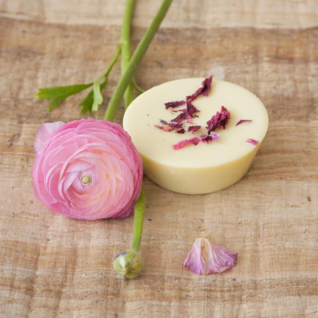 Massage cube with a combination of essential oils that is floral and sweet, with a hint of citrus and spices.