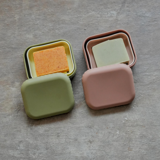 Rectangular silicone carrier for anyone who wants to take soap or other products with them wherever they go. Keeps your bag or bathroom organized – a practical, minimalist, and durable alternative to disposable packaging.