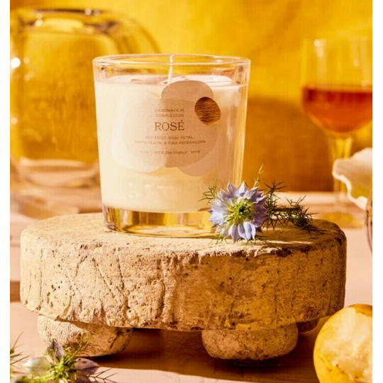 Notes of fresh red fruit and white peach blend with delicate rose petals and pink peppercorn. The cool and charming rosé carries a dreamy elegance wherever you are. The candle is available in 2 sizes: 283 g and 170 g.