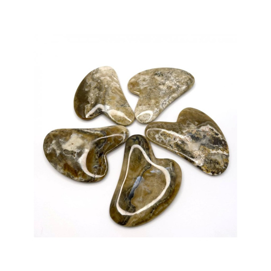 Guasha plate for the face, intended for home use and made in the Czech Republic from Slovak aragonite.