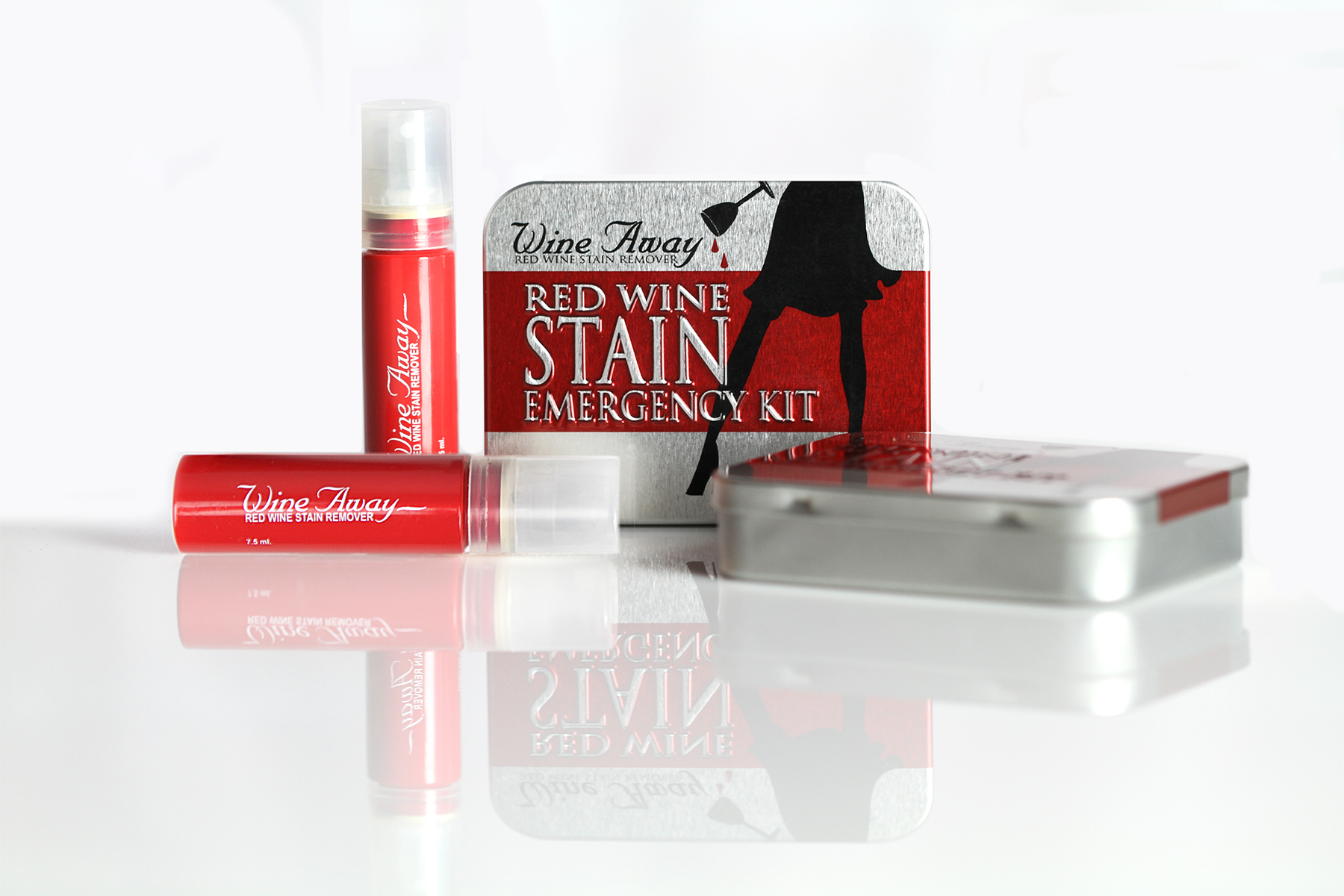 The elegant tin box is embossed and contains two miniature spray bottles (2x7.5ml), the perfect size to conveniently slip into your handbag, briefcase, or car. This remarkable stain remover is designed to quickly and easily remove most red wine stains from carpets, upholstery, and your favorite pieces of clothing.